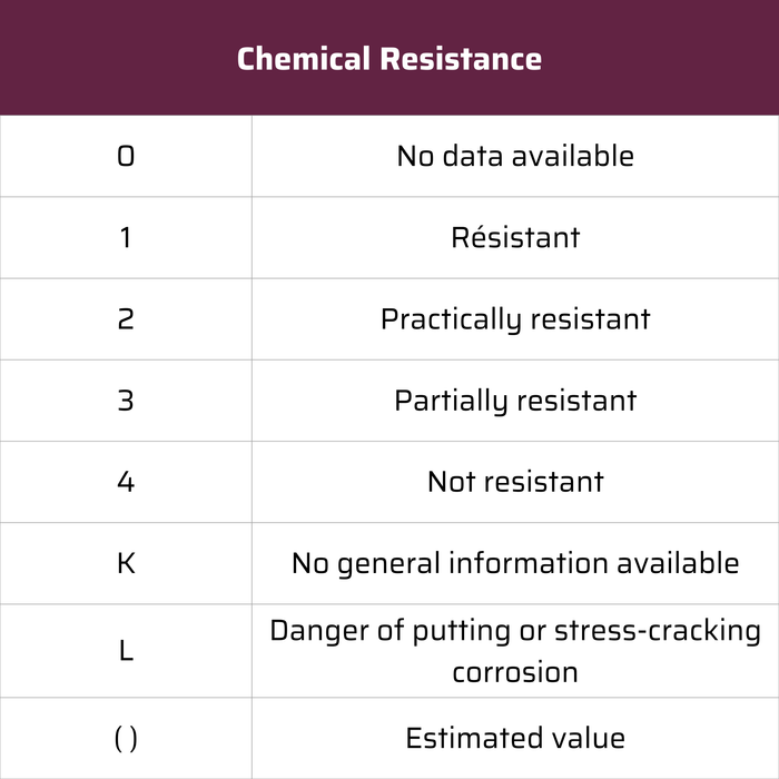 The information provided in this polypropylene chemical resistance database is intended for general guidance only. It offers an initial overview of chemical compatibility but does not replace specific testing performed under real operating conditions.