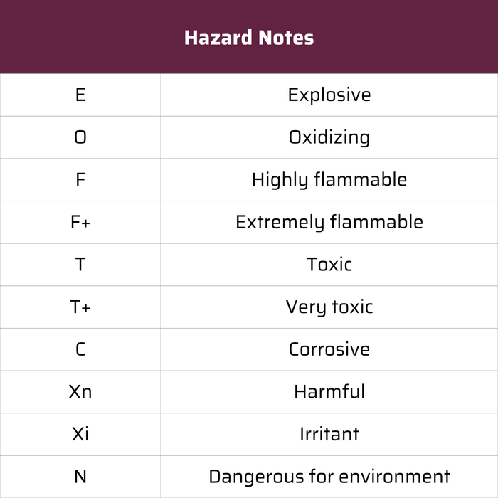 | Chemical ▲▼ | Formula ▲▼ | CAS ▲▼ | Concentration ▲▼ | Hazard ▲▼ | Flammable ▲▼ | PP 20°C ▲▼ | PP 50°C ▲▼ | Comments ▲▼ |