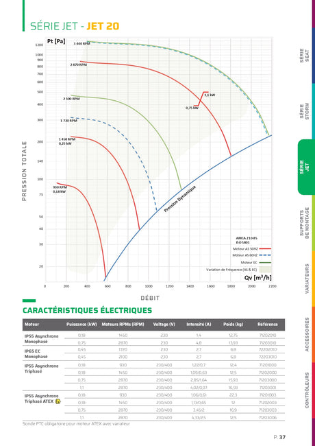 La gamme JET de SEAT Ventilation est une gamme de ventilateurs centrifuges dédiés au montage en ligne. Le moteur est enfermé dans un habitacle et est protégé du flux corrosif et des intempéries.