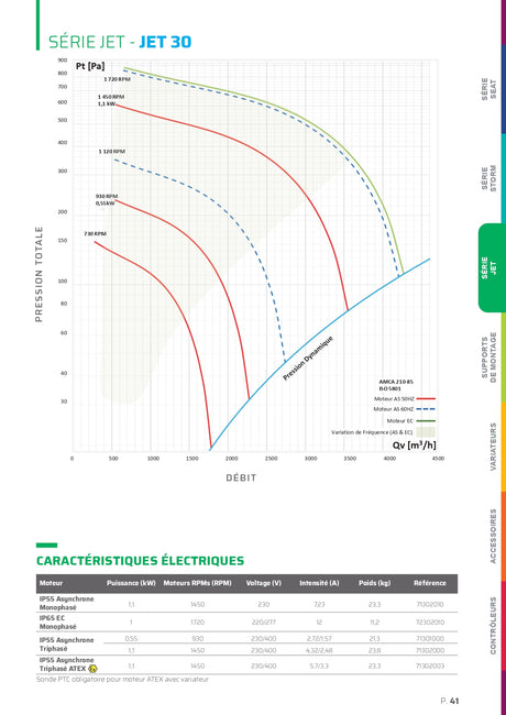 Leurs performances vont jusqu'à 2 000 Pa de pression statique et de 200 à 3 500 m³/h. Le capot étanche intégré et le sectionneur constituent un excellent ensemble d’installation.